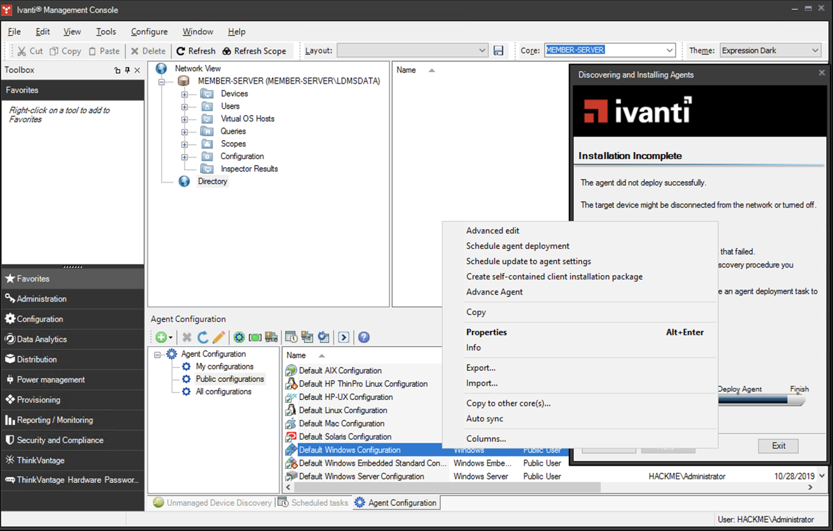 In the right pane, right-click "Default Windows Configuration" and click "Schedule agent deployment".