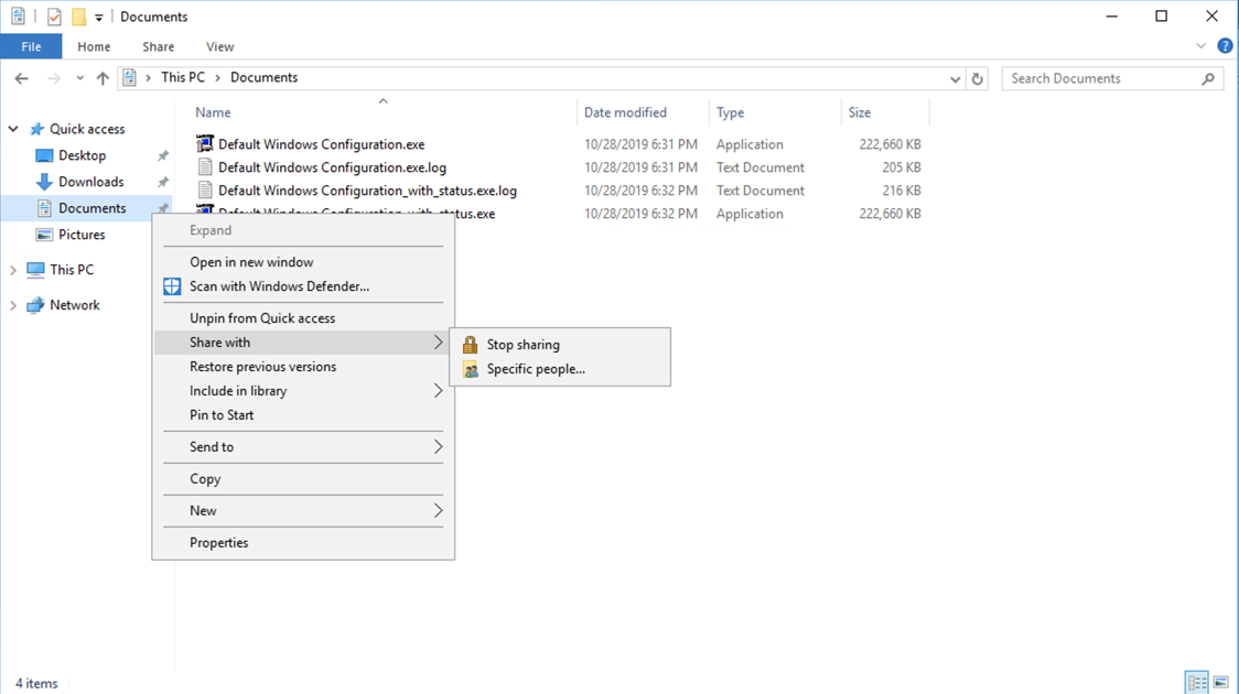 In File Explorer, right-click Documents and click "Share with", "Specific people...", as shown below.