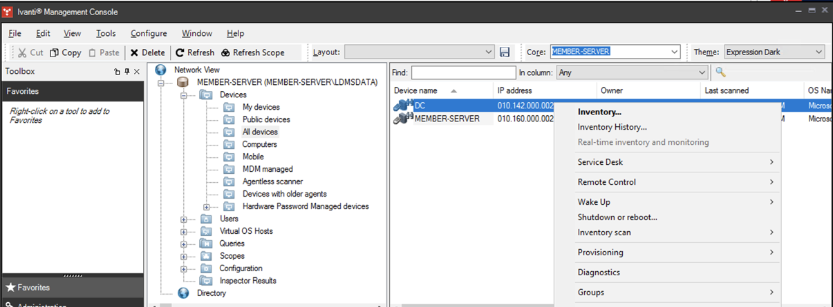 Right-click your domain controller's icon and click Inventory..., as shown below.
