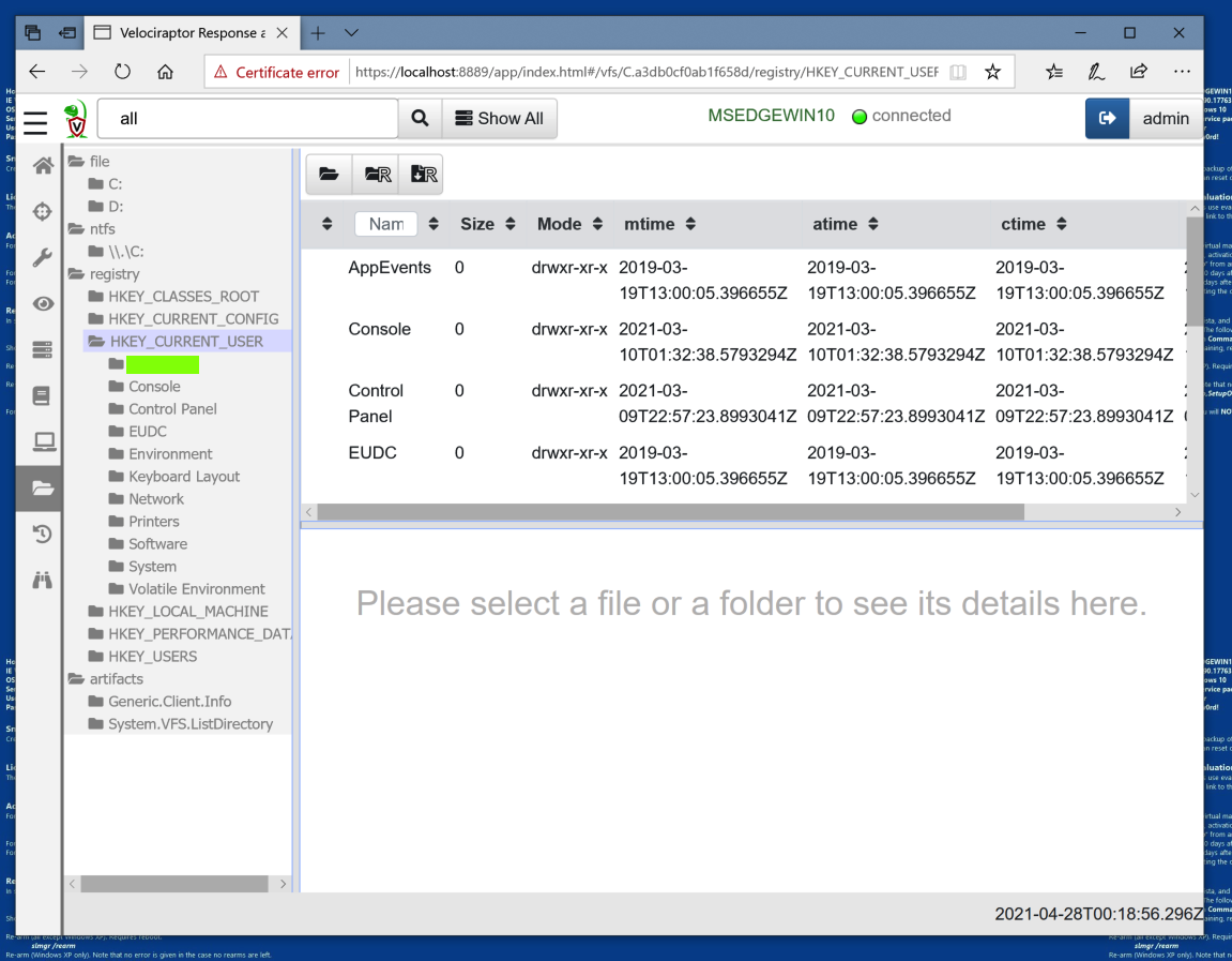 Refresh the ntfs and registry categories the same way.Refresh the HKEY_CURRENT_USER container.