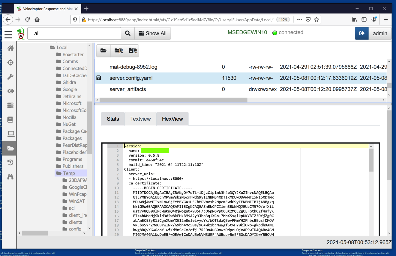 Scroll down to the server_config.yaml file and click it, as shown below.