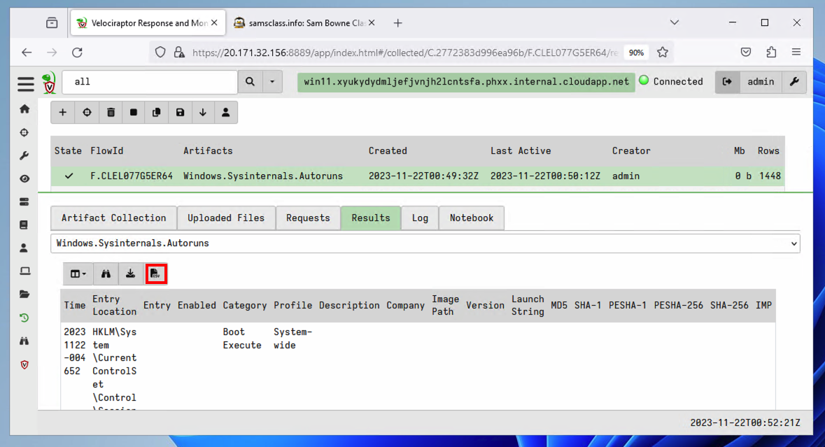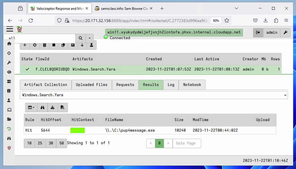 Windows.Memory.ProcessDumpConfigure a ProcessRegex of PUPAcquire the memory of the PUP's process. The acquired memory dump is on the "Uploaded Files" tab, and you can download it to your local system by clicking on the path below the header "vfs_path", as shown below.