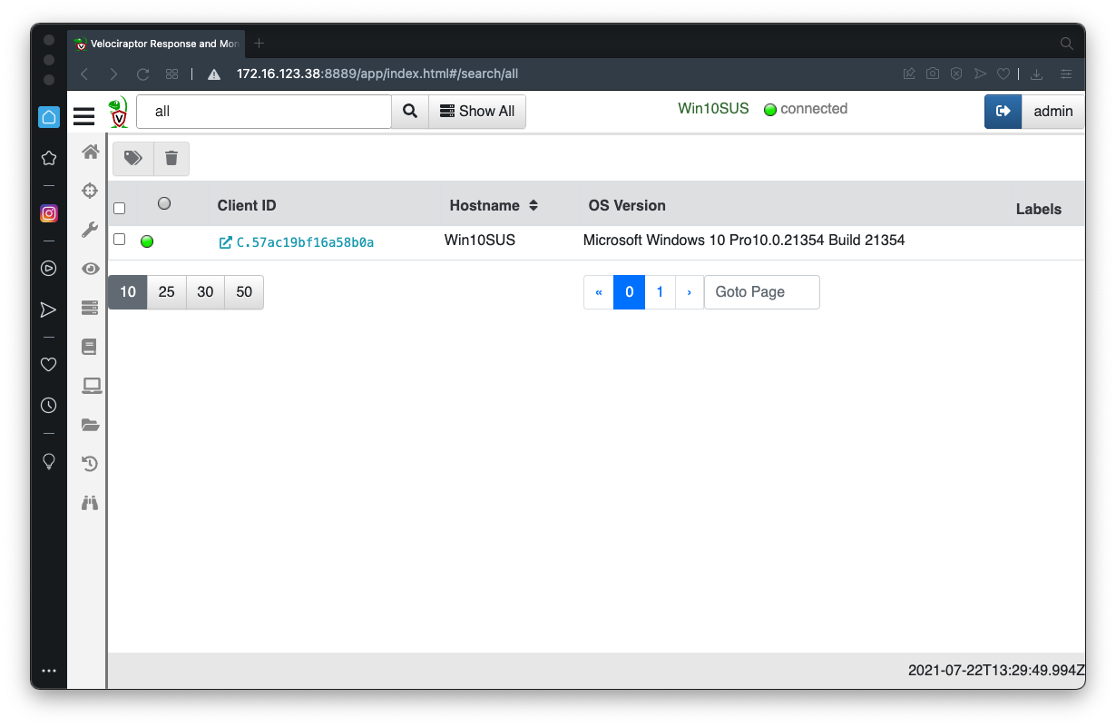 In the Velociraptor GUI, at the top center, click the "Show All" button.