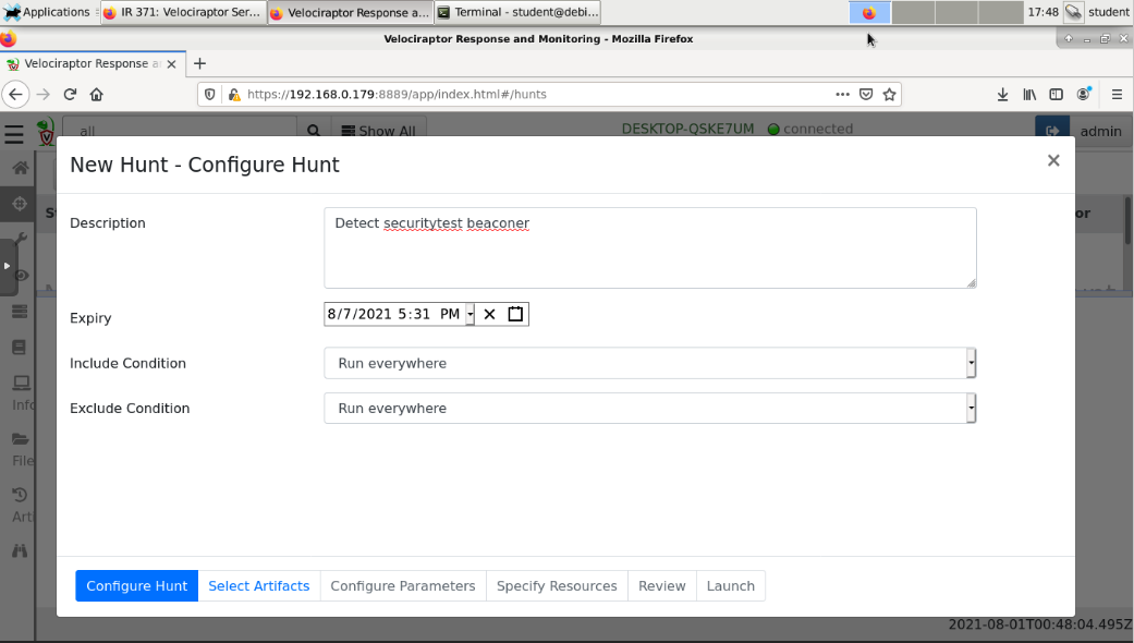 Enter a Description of Detect securitytest beaconer, as shown below.