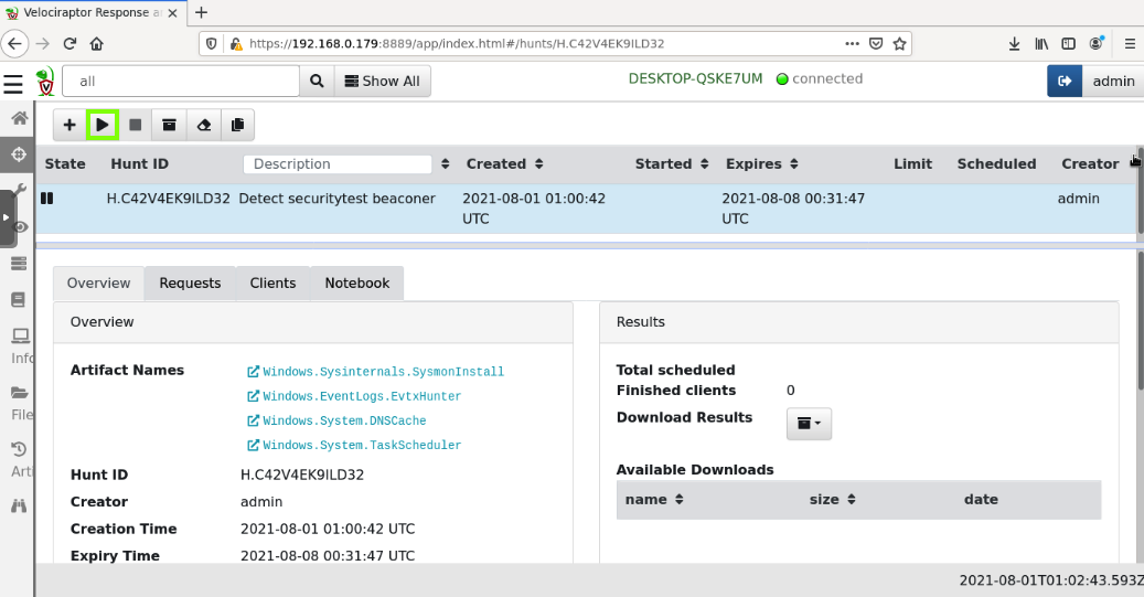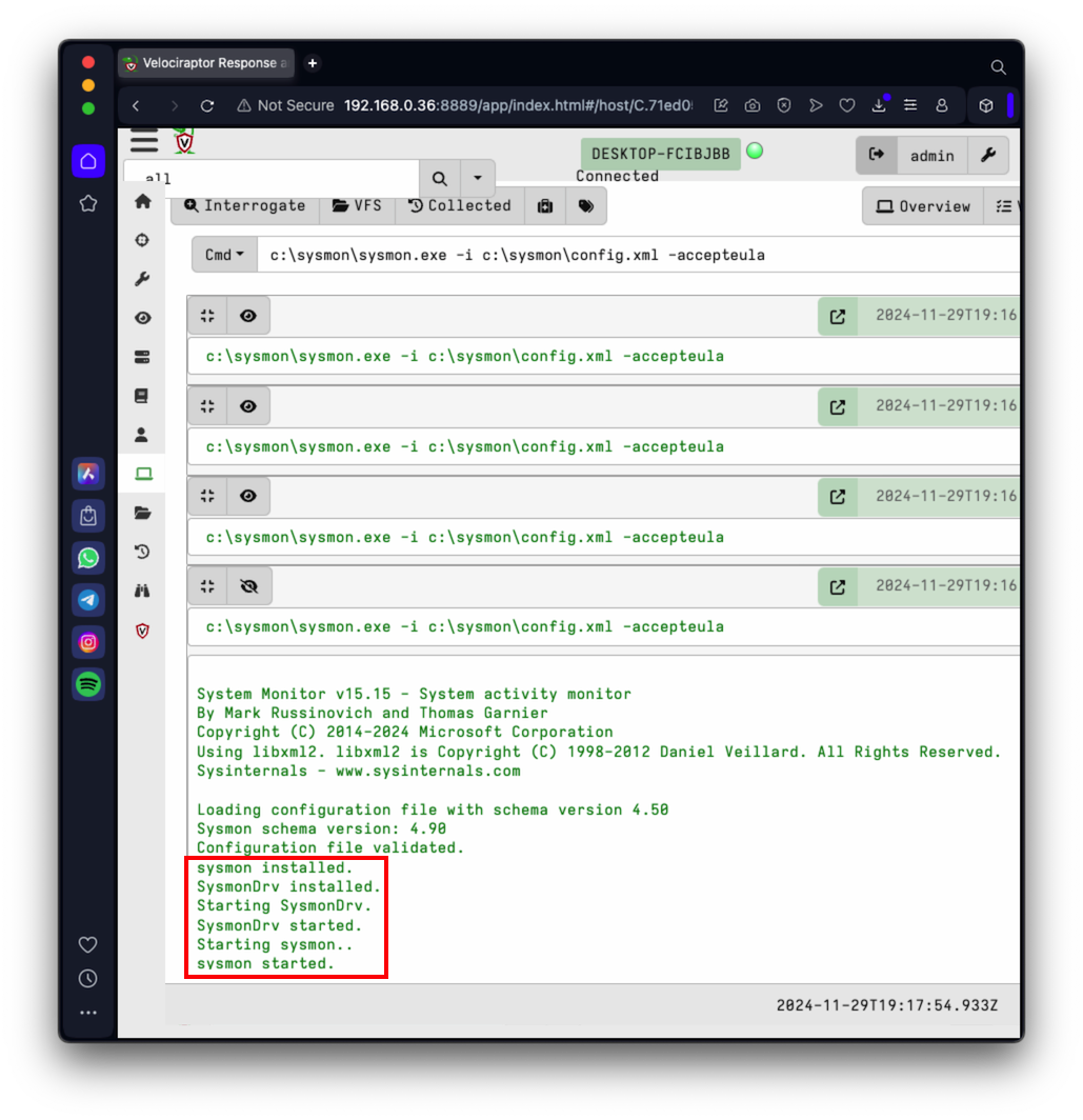 If you are using Windows on ARM (a Mac M1 or later host), you need to manually install sysmon.At the top right of the Velociraptor page, click the green button labelled DESKTOP.