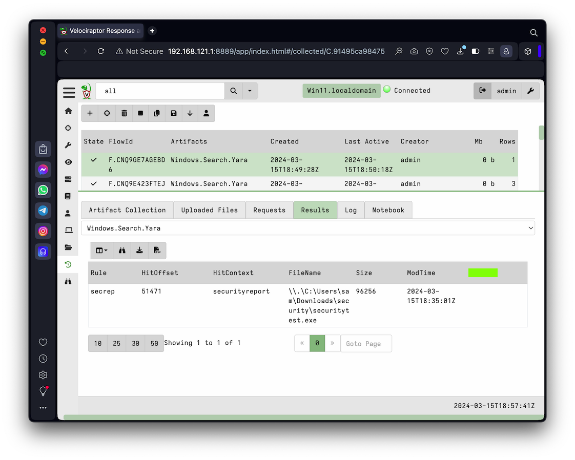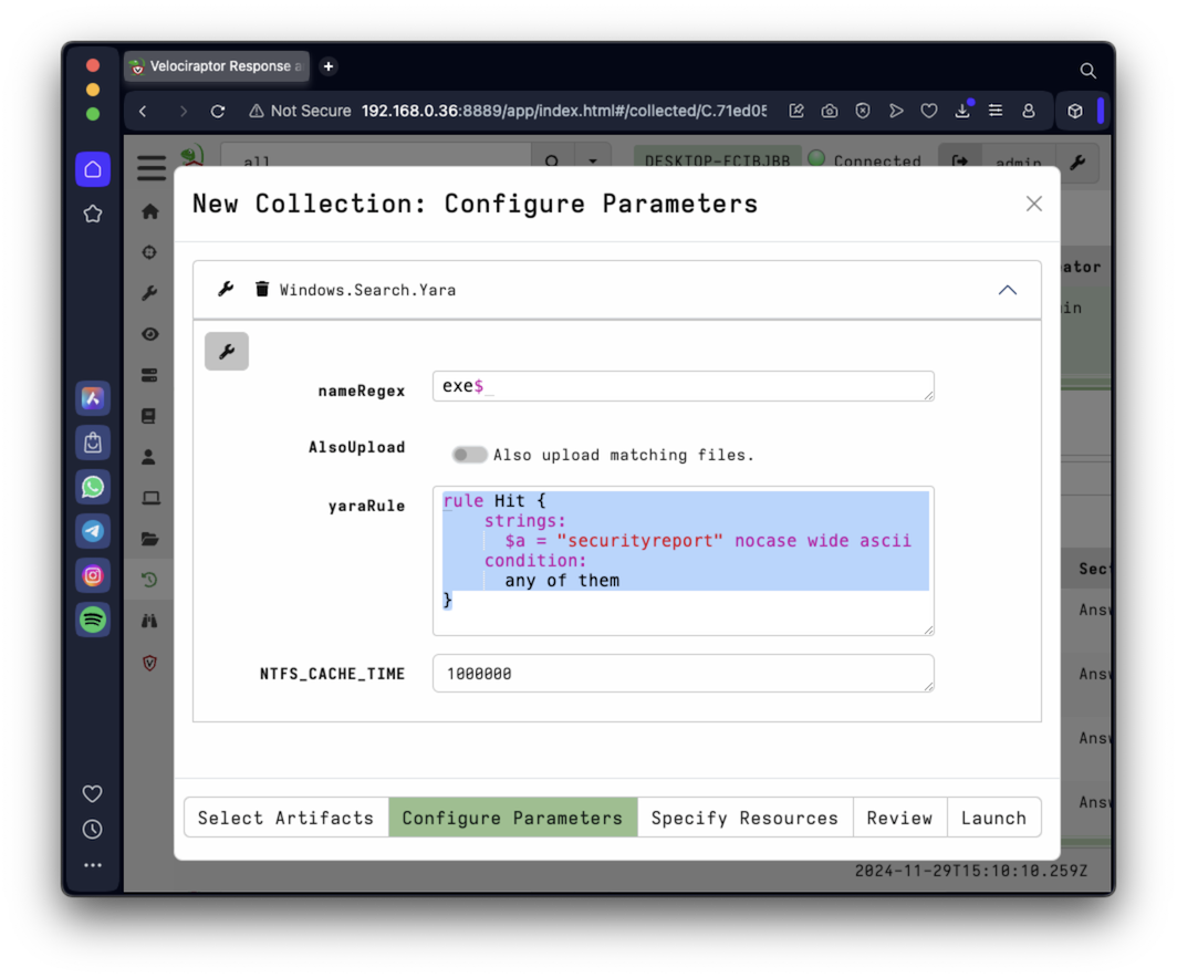 Find this collector:Windows.Search.YaraConfigure these parameters, as shown below:Use a nameRegex of