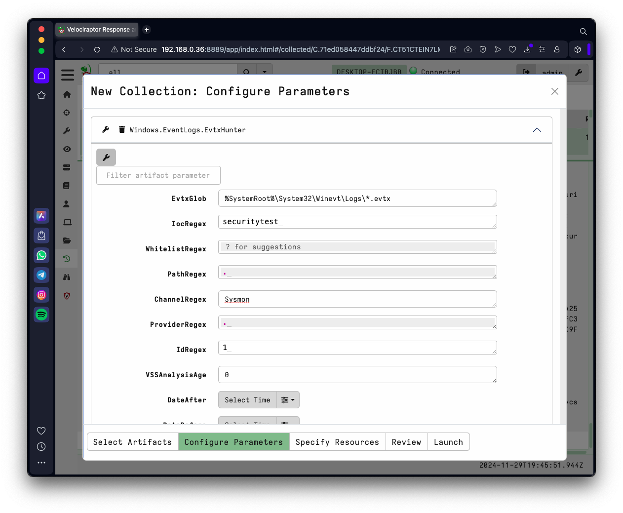 Skip the "Windows.Sysinternals.SysmonInstall" collector below and proceed with "Windows.EventLogs.EvtxHunter".