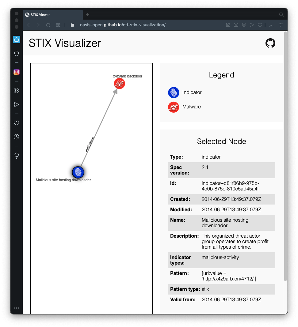 The STIX information appears in an interactive manner that is easier to read, as shown below.