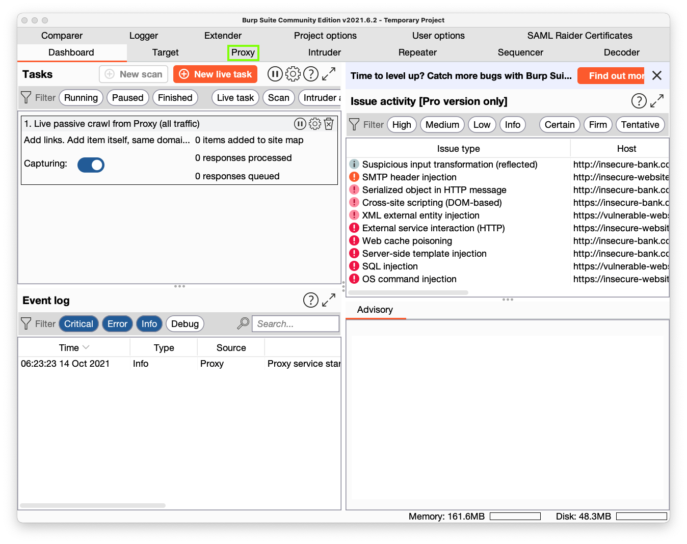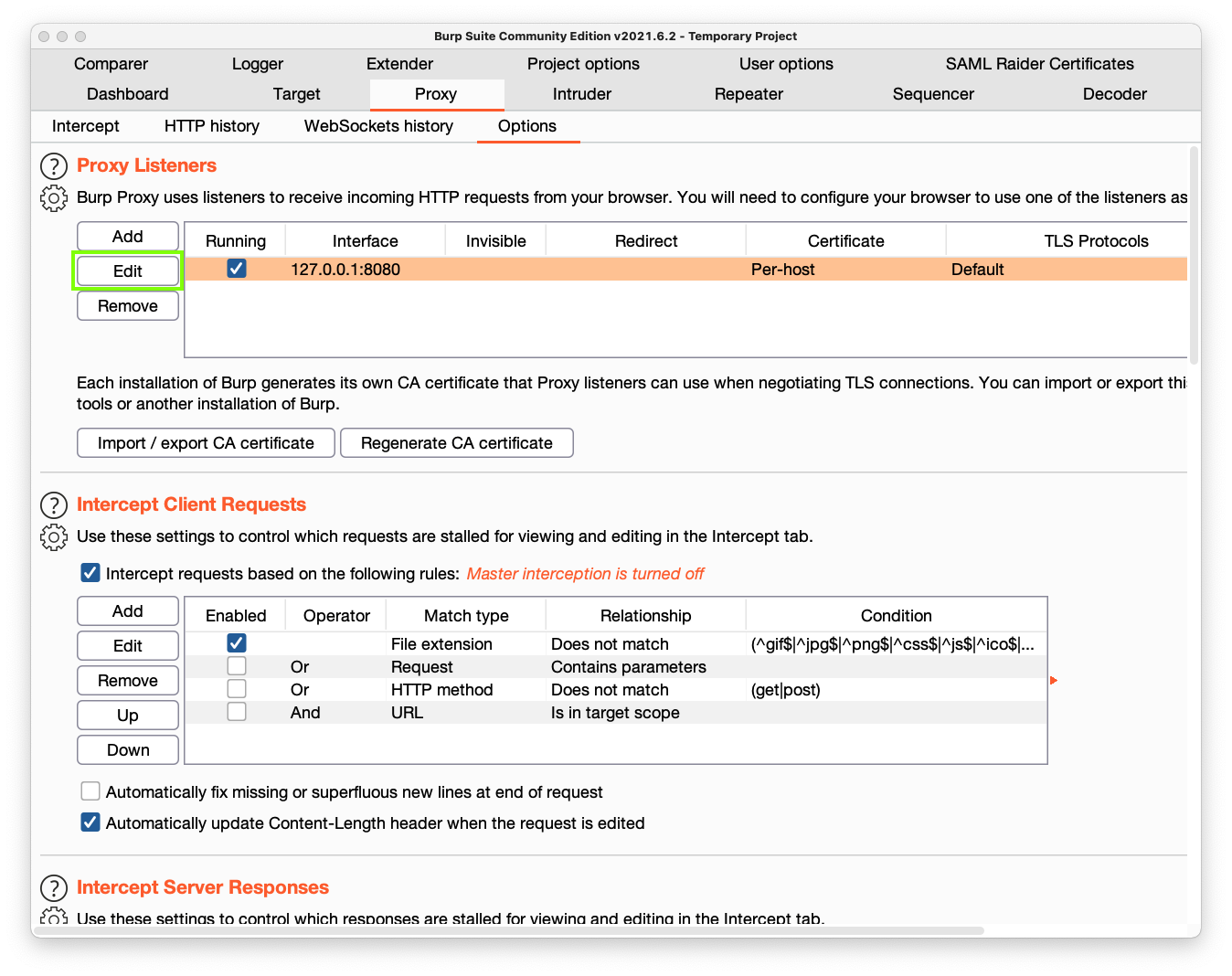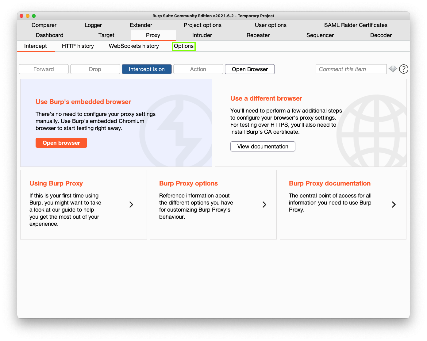 At the "Select the configuration" page click the orange "Start Burp" button.