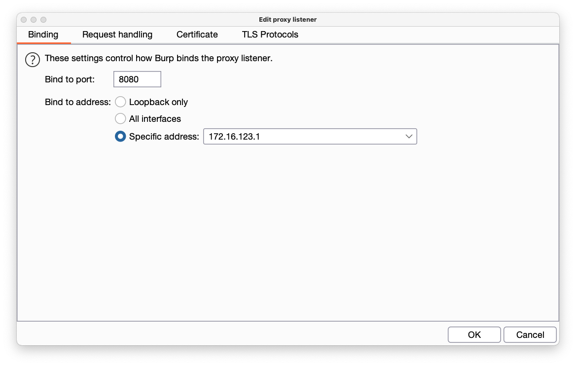 In the "Edit proxy listener" box, in the "Specific address" drop-down list box, select the gateway address you found earlier, as shown below.