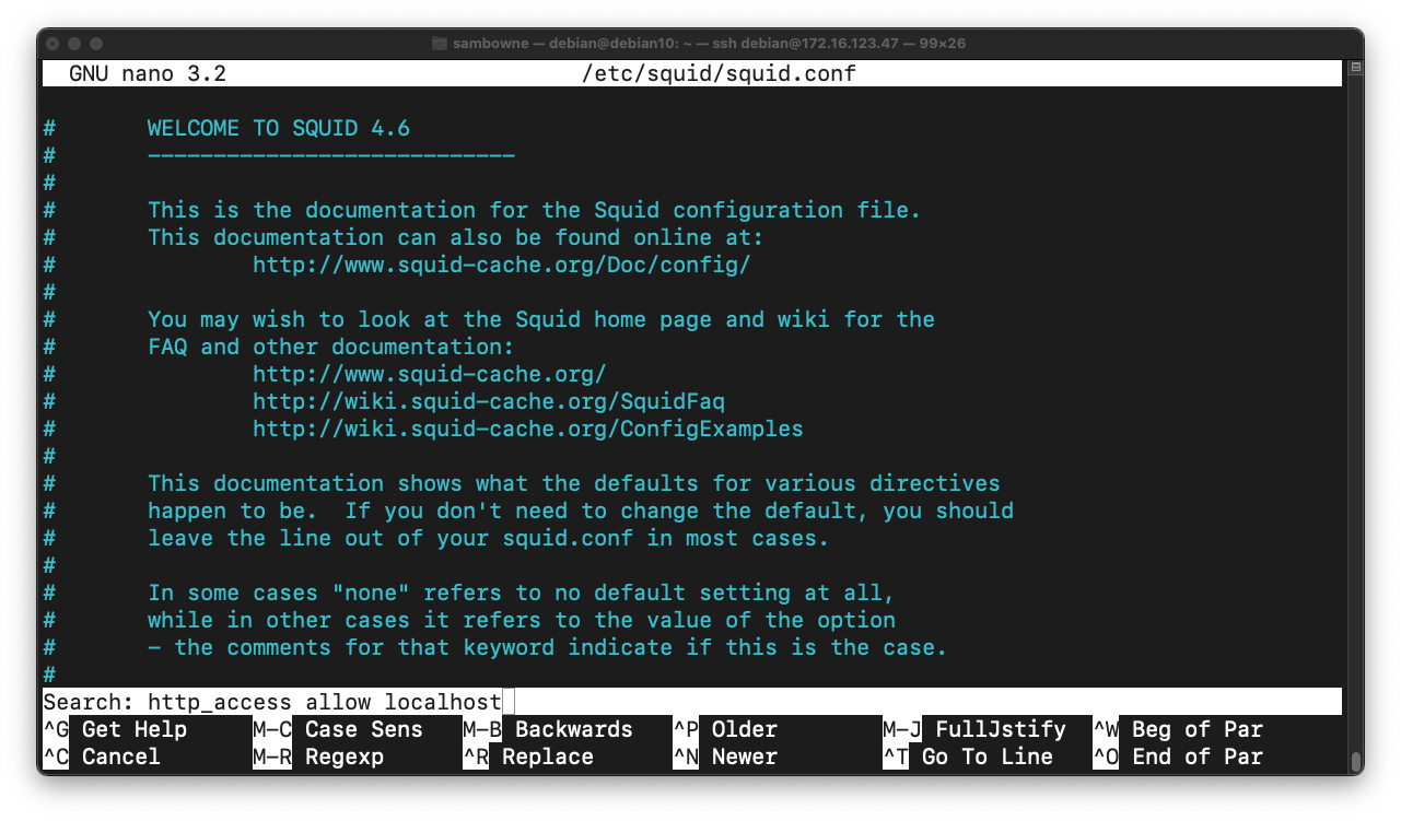 sudo cp /etc/squid/squid.conf /etc/squid/squid.conf.orginal