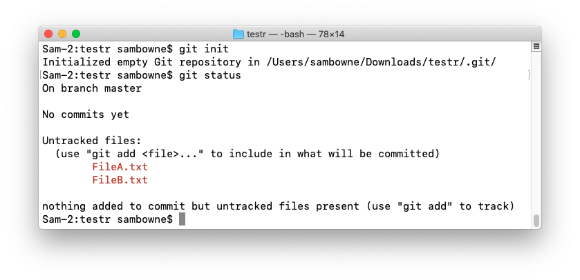 This creates a ".git" directory, but it does not add the files to it, as shown below.git init git status