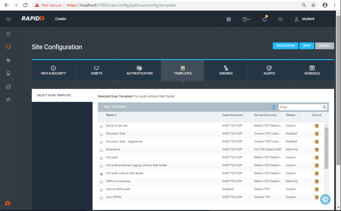 Accept the default selection of "Full audit without Web Spider", as shown below.