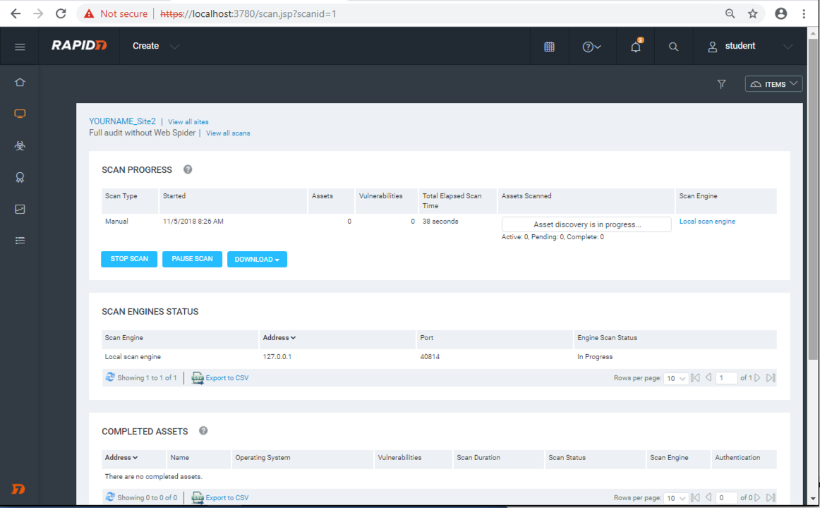 The scan completed in 10 minutes, as shown below. Wait for yours to complete, even if it takes longer.