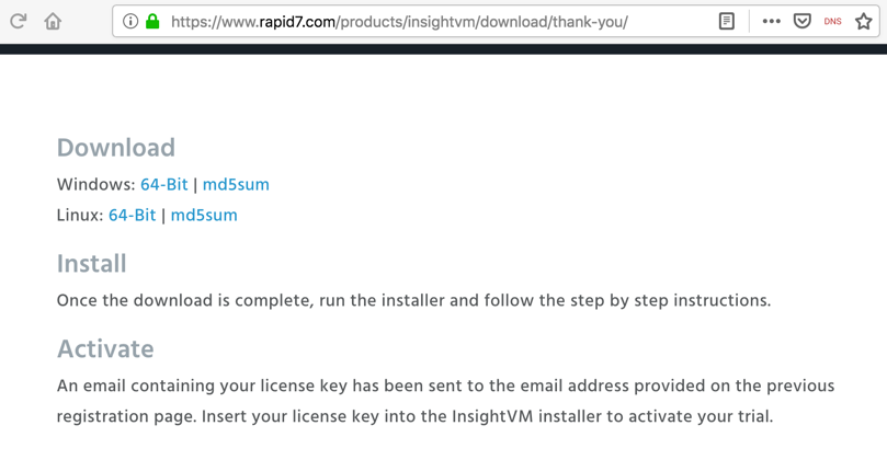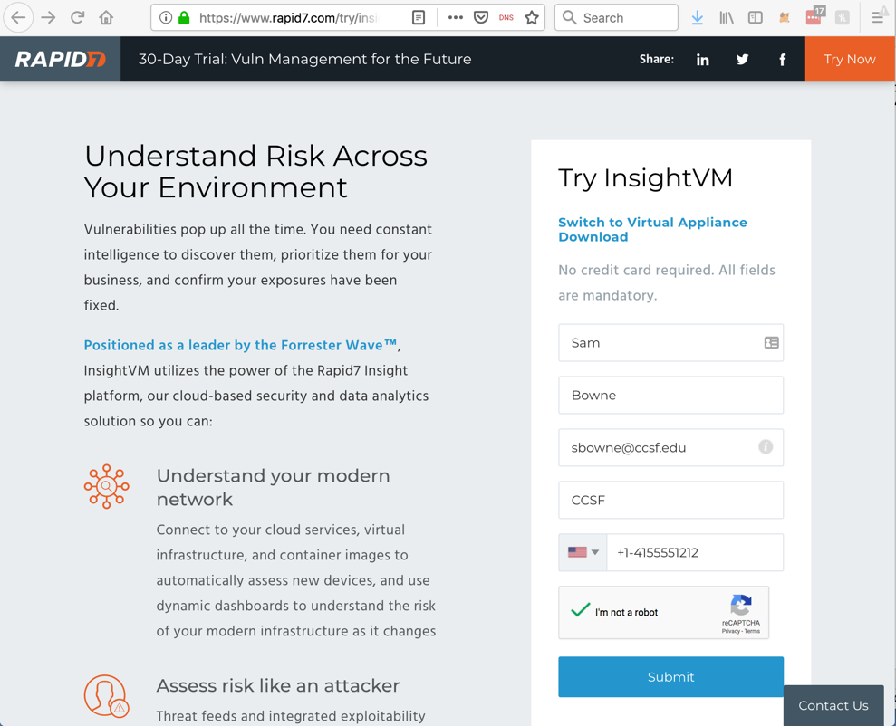 In the "InsightVM" section, click the "Free Trial" button, as shown below.