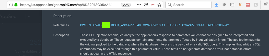 Scroll down to the "Description" section. Find the OVAL number for this vulnerability, which is covered by a green box in the image below.