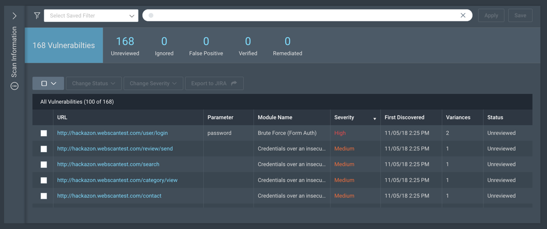 There's only one "High" severity vulnerability, as shown below.
