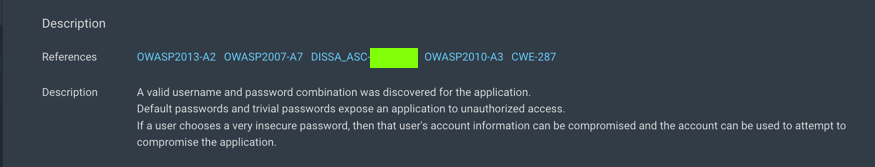 Find the "DISSA_ASC" number for that vulnerability, as shown below.