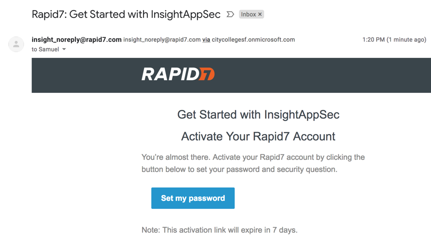 Check your email. Find the message similar to the one shown below, and click the button to set up your account.