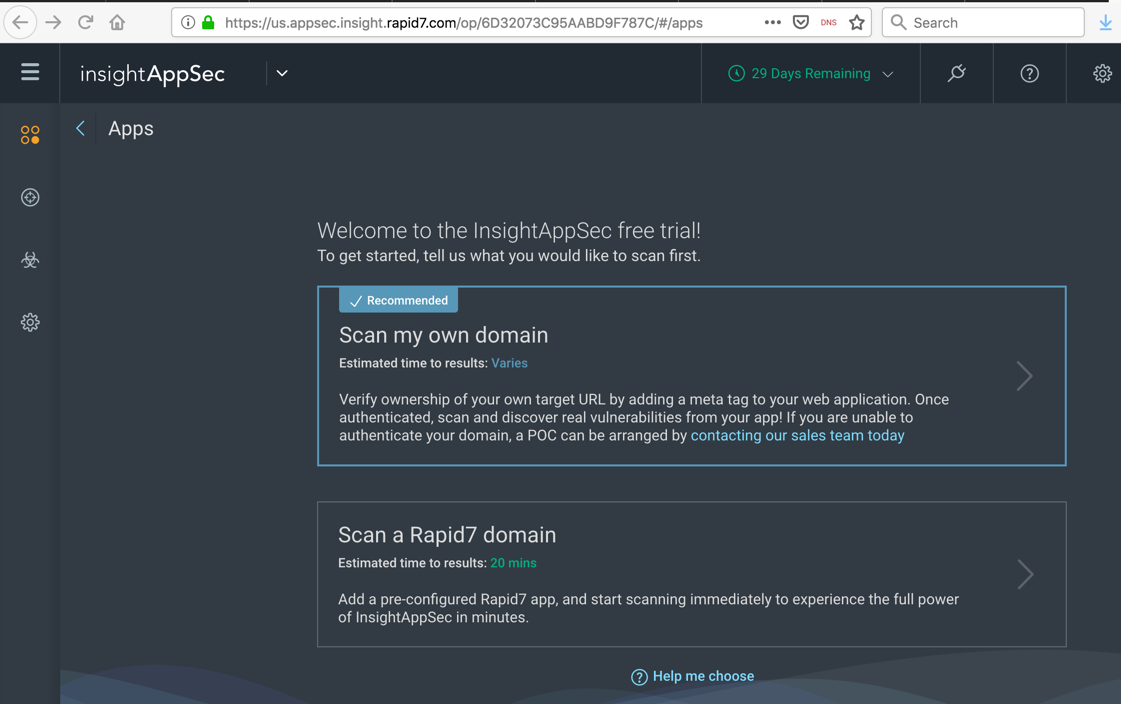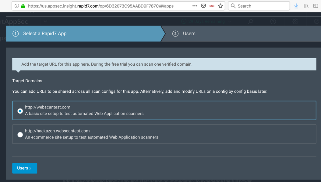 Click "Scan a Rapid7 domain".