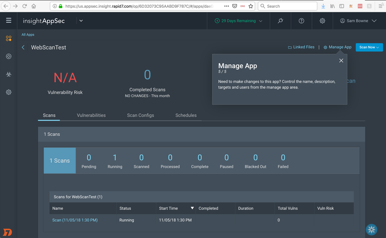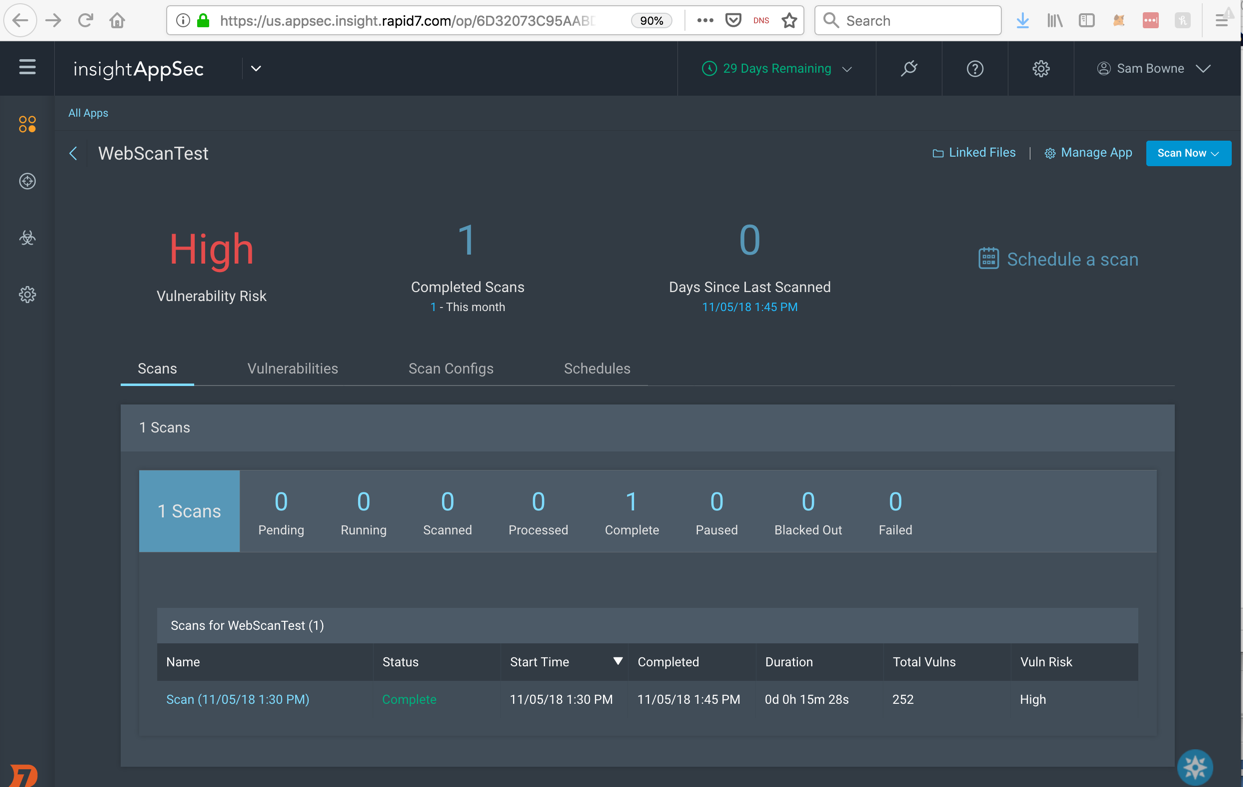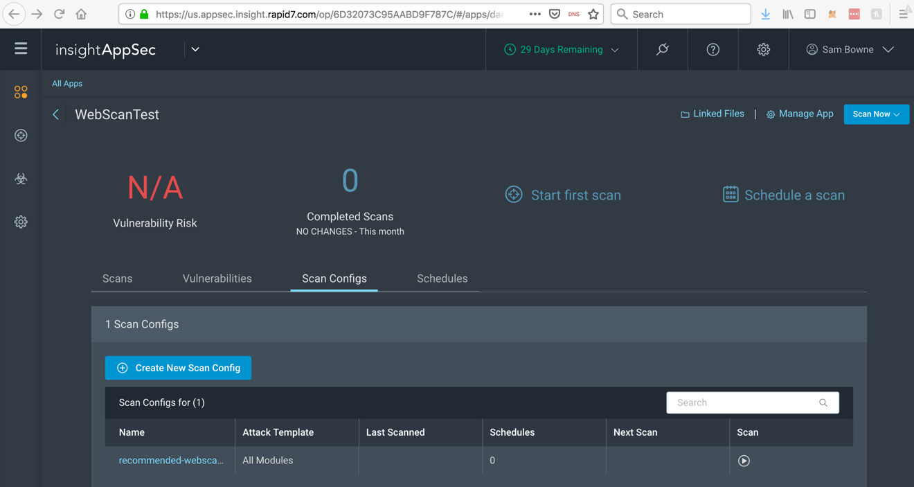 In the top right, click the "Scan Now" button. In the drop-down list, click recommended-webscantest