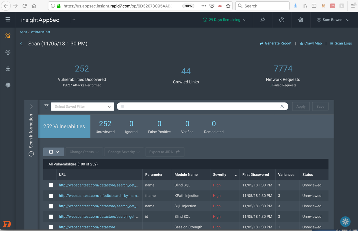 On the "Select a Rapid7 All" page, click "http://webscantest.com", as shown below.