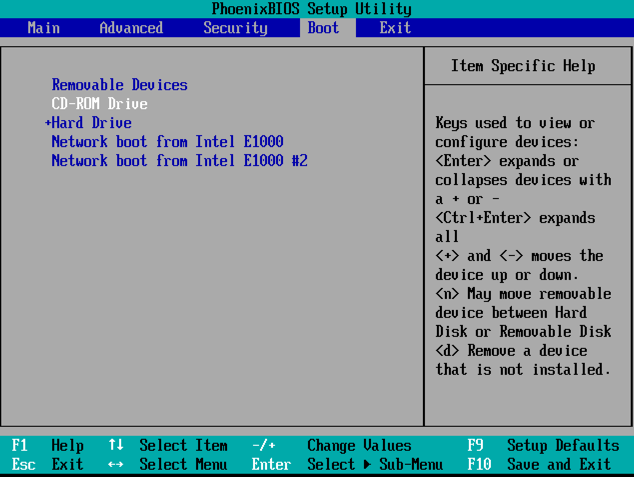 I had to adjust the BIOS to boot from CD, as shown below.