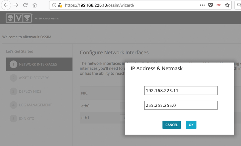 Wait a minute or so for the process to complete, and the scren below will appear, showing the IP address to use to connect to your AlienVault SIEM.