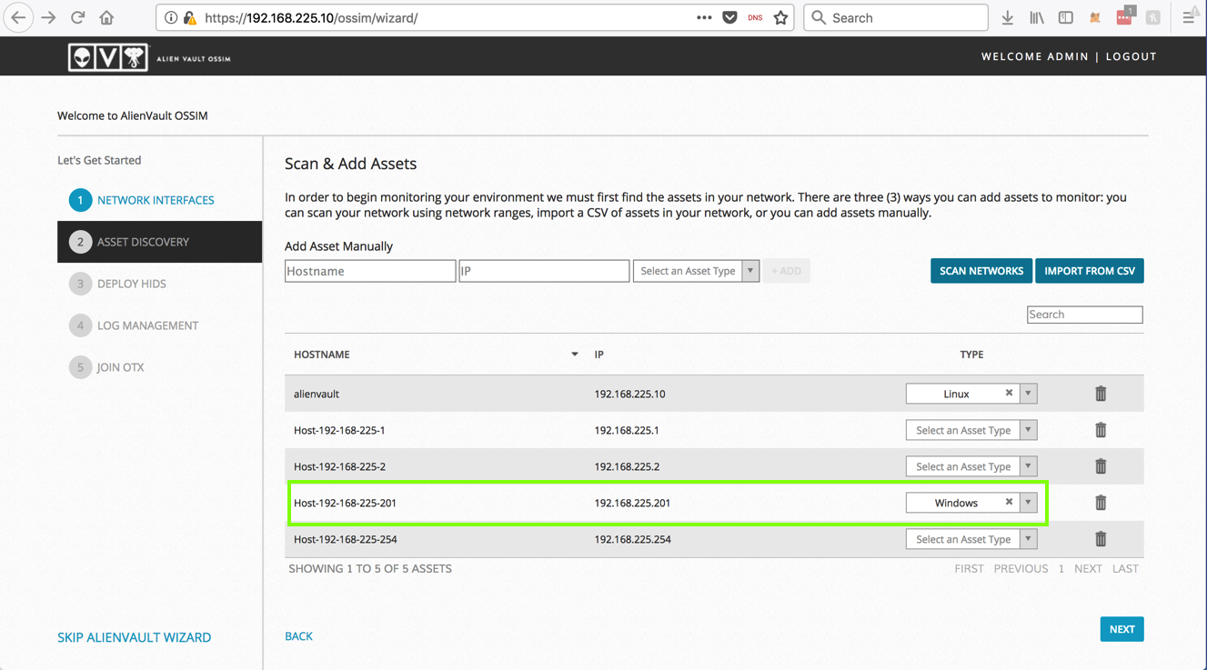 In the "Scan & Add Assets" page, verify that your Windows server was detected, as outlined in green in the image below.
