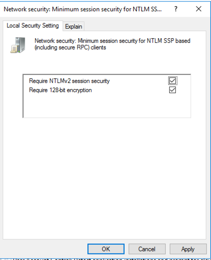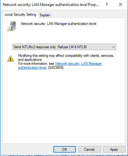 In the pop-up box, select "Send NTLMv2 response only. Refuse LM & NTLM", as shown below.