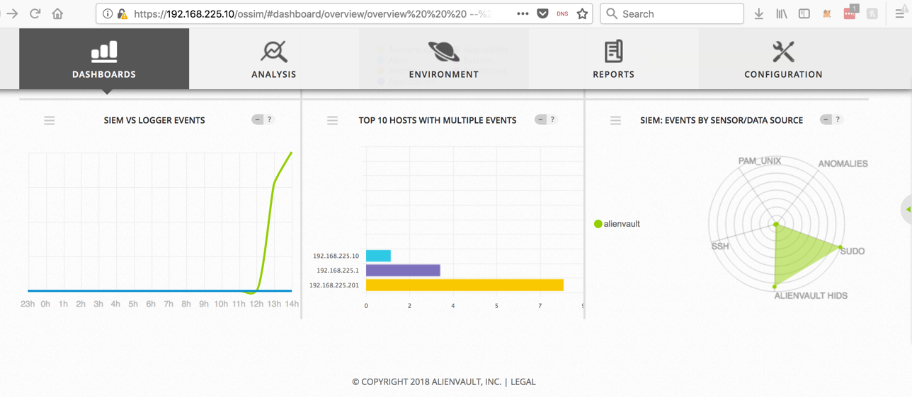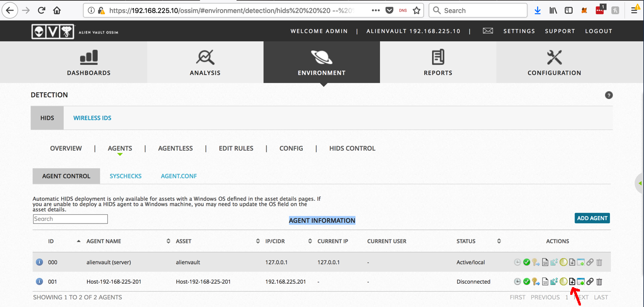 So to deploy the agent, in the Alienvault Web page, at the top center, click ENVIRONMENT, DETECTION.