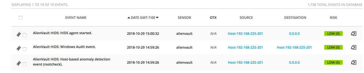 You should see events from the Windows server, including "AlienVault HIDS: HIDS agent started", as shown below.