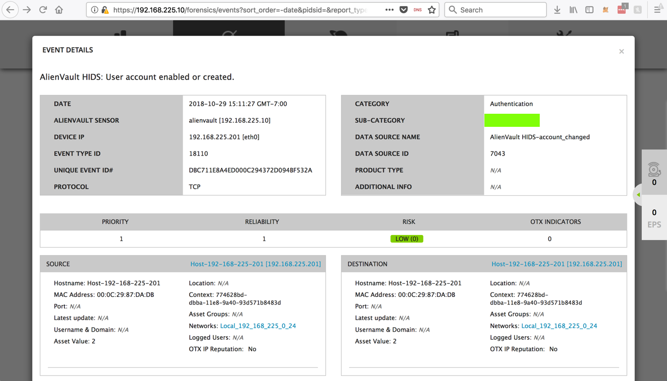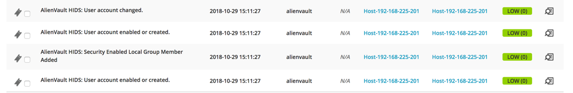 Scroll down to see the events. You should find an event named "AlienVault HIDS: User account enabled or created.", as shown below.