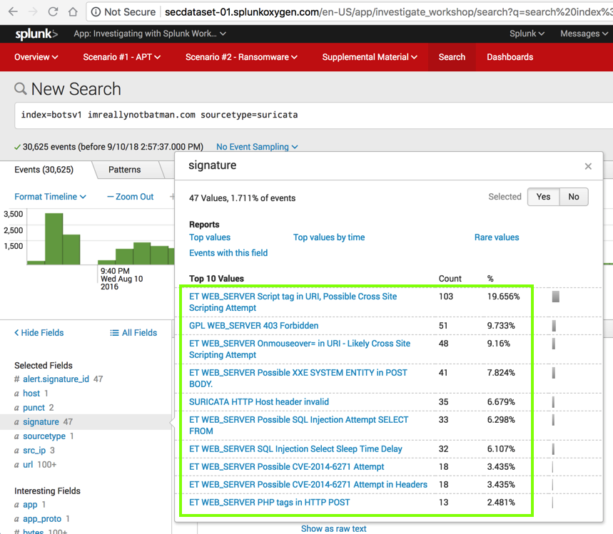Now we can see that this is definitely attack traffic, including "Cross Site Scripting", "SQL Injection", and more.