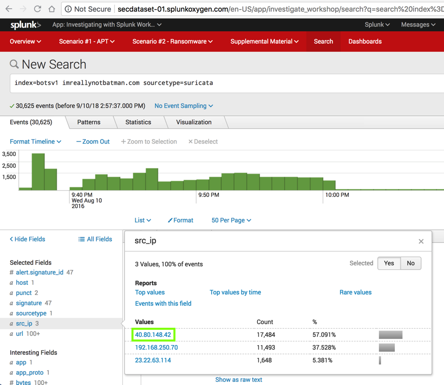 This result shows that IP "40.80.148.42" sent a large amount of HTTP traffic, but it doesn't prove that the traffic was malicious.