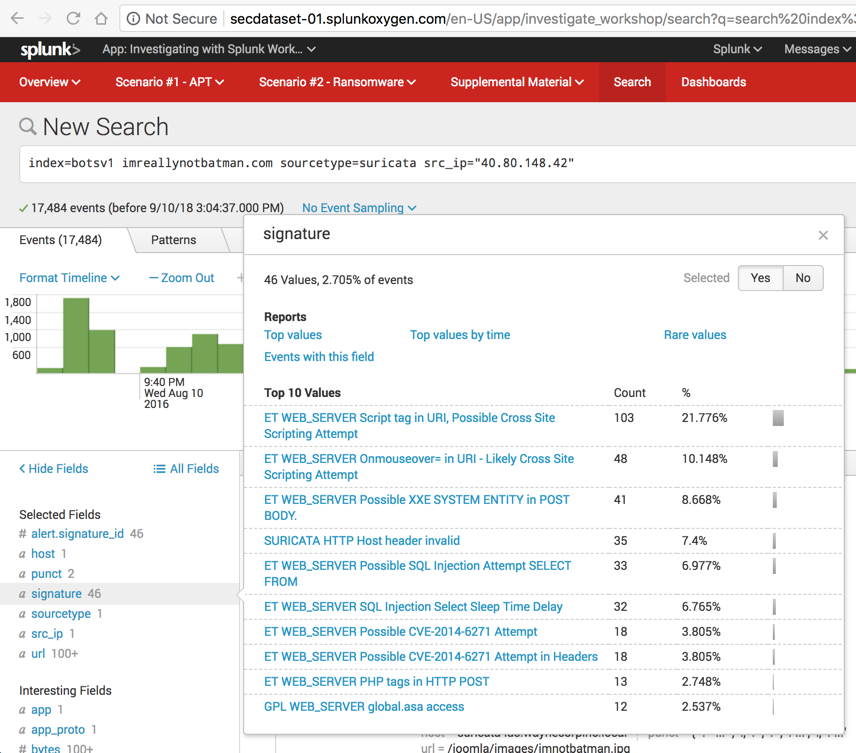 Now we can see that this IP address is definitely sending attack traffic, including "Cross Site Scripting", "SQL Injection", and more.