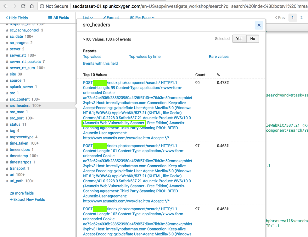 In the "sourcetype" box, click stream:http, which is outlined in green in the image below.