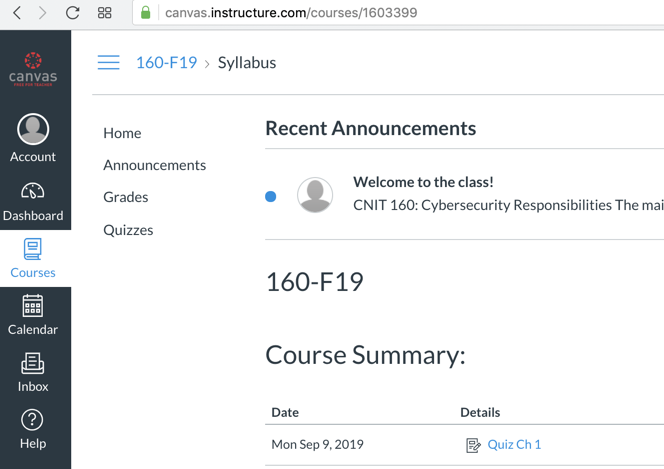 Catalog DescriptionExplores security technology, risks, countermeasures, and consequences, to help decision-makers protect those who rely on them. Includes hands-on activities such as packet analysis, exploiting vulnerable systems, and password cracking, and also research, presentations, and debates about current controversies, laws, and policies. Addresses topics such as surveillance, cyberwar, and computer crime. Student Learning OutcomesUpon completion of this course, a student will be able to: Textbook"CISM Certified Information Security Manager All-in-One Exam Guide 1st Edition" by Peter H. Gregory QuizzesThe quizzes are multiple-choice, online, and open-book. Study the textbook chapter and take the quiz before that class. Each quiz is due 30 min. before class. Each quiz has 5 questions, you have ten minutes to take it, and you can make two attempts. Presentations and PapersEach student must make two in-class Presentations and write two Papers. Topics must be submitted in advance. Presentations will be strictly limited to four minutes. Papers must be 500 - 1000 words, written in proper grammatical English, and free of plagiarism. Papers must be emailed as plaintext in the body of an email to CNIT.160@gmail.com Live StreamingTo join the livestream, use this Zoom link: https://zoom.us/j/4108472927 For class-related questions, please email CNIT.160@gmail.com |