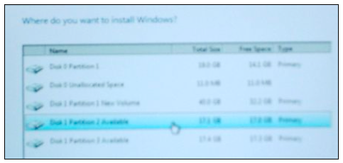 After you have clicked an available partition, click Next.
