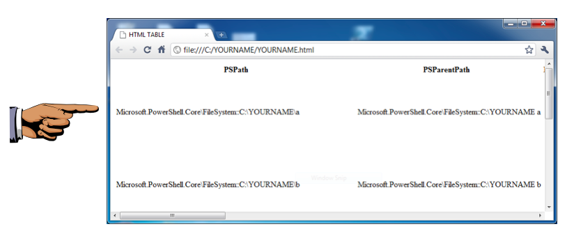 Create a Web page listing of all the files in the C:\YOURNAME directory.