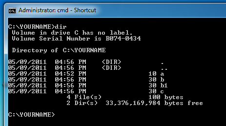 Open Powershell and get a list of all the files in the C:\YOURNAME directory with a