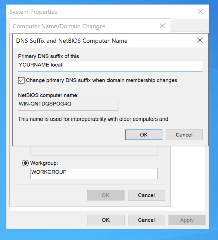 In the "Primary DNS suffix of this computer" box, type
