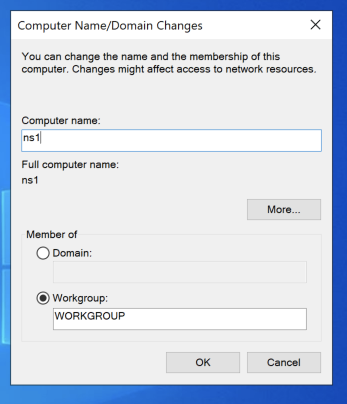 Enter a Computer Name of ns1, as shown below.