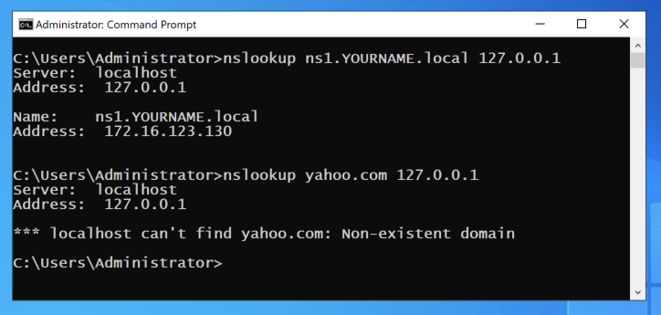 nslookup ns1.YOURNAME.local 127.0.0.1