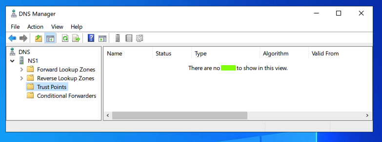 In "DNS Manager", on the left side, click "Trust Points".The flag appears, covered by a green rectangle in the image below.