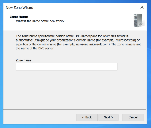 To prevent this we need to create a forward lookup zone with the name "."