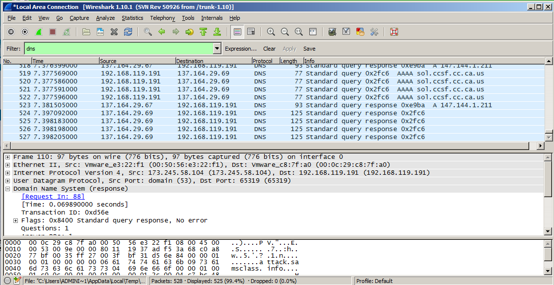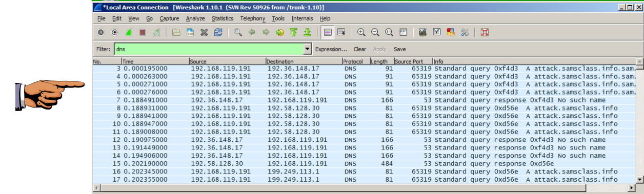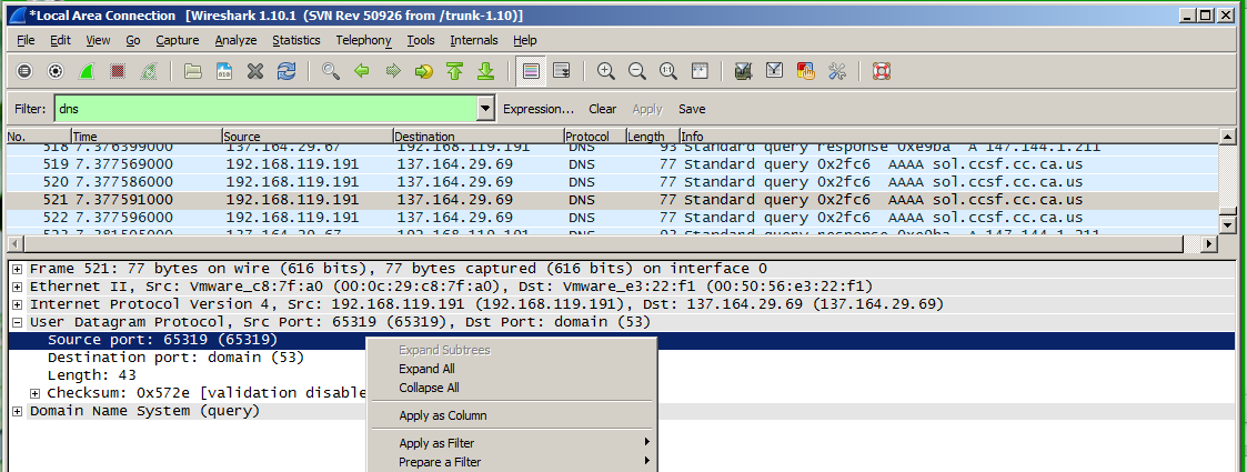 If necessary, scroll up until you find several "Standard query" packets. The Source Port for each packet should be visible as a column.