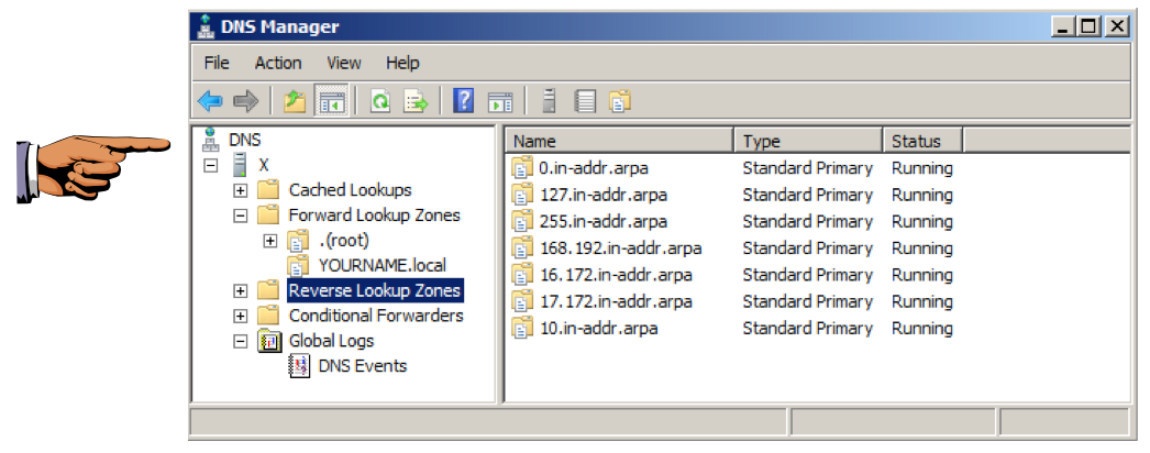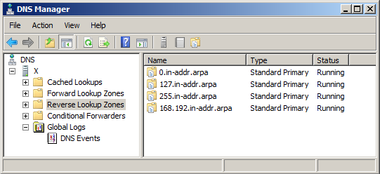 You now have a reverse lookup zone for 168.192.in-addr.arpa, as shown below.
