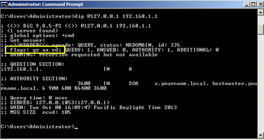 This server will return a NXDOMAIN (non existing domain) answer whenever a recursive query is made.